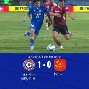 江苏省城市足球联赛第10轮,连云港队坐镇主场迎战扬州队。比赛中,连云港队球员张骋成功打入全场唯一进球,为球队锁定胜局。最...